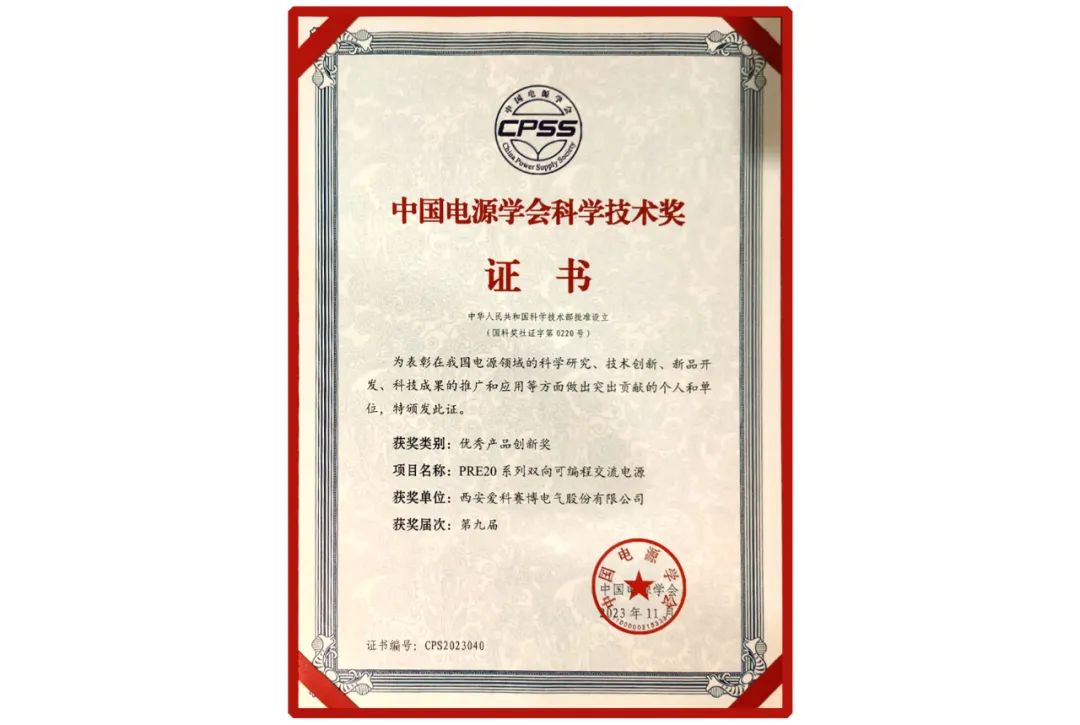 中國(guó)電源學(xué)會(huì)科學(xué)技術(shù)類優(yōu)秀產(chǎn)品創(chuàng)新獎(jiǎng),主要授予電源行業(yè)中,技術(shù)經(jīng)濟(jì)指標(biāo)達(dá)到國(guó)際先進(jìn)水平,在設(shè)計(jì)、工藝、材料、關(guān)鍵技術(shù)、系統(tǒng)集成等方面取得顯著創(chuàng)新成果,推廣應(yīng)用取得較強(qiáng)市場(chǎng)競(jìng)爭(zhēng)力,創(chuàng)造了較好的經(jīng)濟(jì)效益,形成了產(chǎn)業(yè)的主導(dǎo)技術(shù)和名牌產(chǎn)品,對(duì)產(chǎn)業(yè)技術(shù)進(jìn)步有較大促進(jìn)作用的優(yōu)秀創(chuàng)新產(chǎn)品。